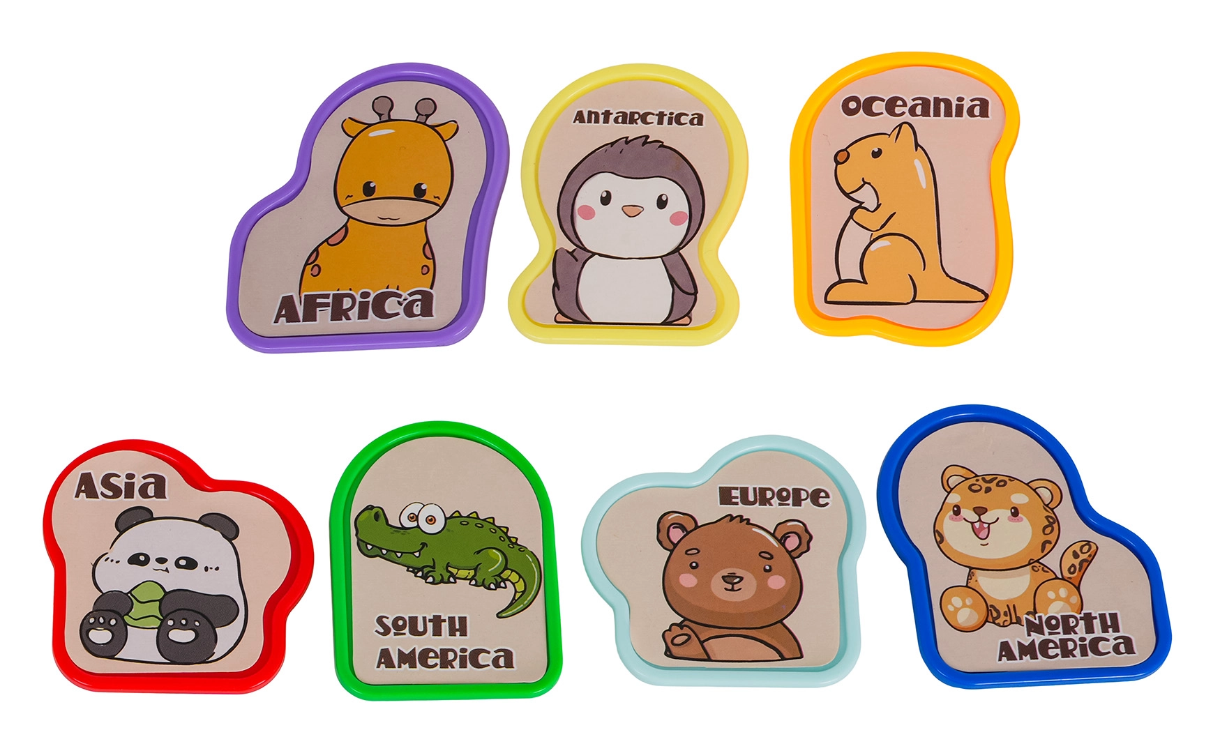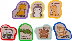 • Földrajz tanulása játékkal – kontinensek, állatok, színek és formák.