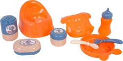- baba, utazóágy, babakocsi, etetőszék, hordozó, bili, tányér, kanál, villa, üveg, krémtartó, púdertartó, szappantartó, előke
