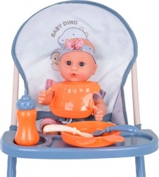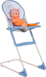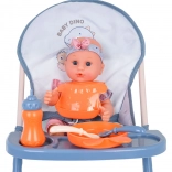Kényelmes etetés a magas etetőszéknek köszönhetően, levehető tálcával és evőeszköz-készlettel, tányérral, előkével és üvegcsével. Tökéletes a valósághű gondozási jelenetekhez.