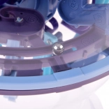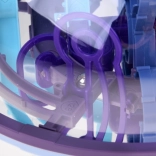 Jól látható lila–kék pályák vezetik a fémgolyót kanyarokon, hidakon és rámpákon át. Elég dönteni és forgatni a pontos irányításhoz.