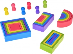 A telt árnyalatok és a különböző geometriai formák segítik a színek, formák felismerését, valamint a méret és minta szerinti rendezést.