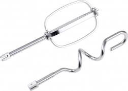 A szett része egy habverő és egy dagasztó horog, valamint egy praktikus tál – ideális a különféle játékreceptekhez.