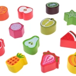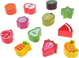 A készlet élénk színű gyümölcsdarabokat tartalmaz, amelyeket a megfelelő nyílásokba lehet illeszteni. A gyerekek megtanulják a színeket, formákat és a gyümölcsök nevét, miközben logikát gyakorolnak.
