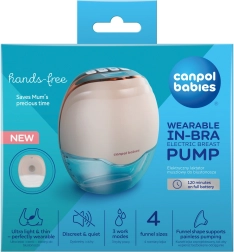 A CANPOL babies Hands‑Free vezeték nélküli, elektronikus mellszívó aktív édesanyáknak. Kompakt kialakítása a melltartóba illeszkedik, halkan működik (max. 50 dB), és szabad mozgást biztosít otthon, munkában és utazáskor. Három üzemmód utánozza a baba természetes szopási ritmusát, mindegyikben 8 intenzitásfokozattal egészen 26 kPa‑ig a maximális kényelemért.