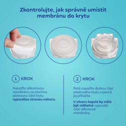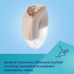 A levehető 120 ml‑es tartály praktikus nyílással segíti a tej könnyű áttöltését, és mivel teljesen két részre nyitható, egyszerűen mosható és fertőtleníthető. A helyesen formált szilikon tölcsér kíméli a mellbimbót és támogatja a tej egyenletes áramlását. A csomagban 4 betétméret (17, 19, 21, 24 mm) található; opcionálisan 27 mm‑es tölcsér is elérhető (külön megvásárolható).