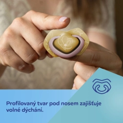 A szimmetrikus csúcs természetesen alkalmazkodik a szájhoz bármilyen pozícióban, támogatja a helyes szájüregi fejlődést és a kényelmes szopást.
