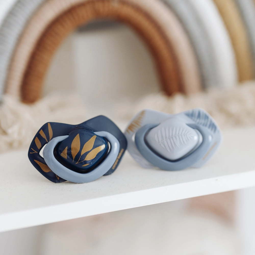 A Light Touch Gold cumik úgy lettek tervezve, hogy tiszteletben tartsák a gyermek szájüregének természetes fejlődését. A szimmetrikus forma helyesen illeszkedik, függetlenül a szájban elfoglalt helyzetétől, míg az ultrakönnyű pajzs nyílásokkal segít csökkenteni az érzékeny bőr irritációját. A 100% szilikon, hipoallergén csúcs íz- és szagmentes, ezáltal megkönnyíti a cumi elfogadását.