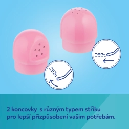 - Praktikus kialakítás – 17 cm-es toldat, 2 különböző szögű fúvókavég, puha palacktest.