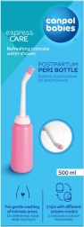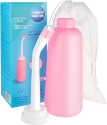 A Canpol babies praktikus intim zuhanya a toalett utáni kíméletes leöblítéshez biztosítja a mindennapi intim higiéniát otthon, kórházban és utazás közben is. Az 500 ml-es űrtartalomnak, a 17 cm hosszú toldatnak és a két, különböző szögű fúvókavégnek köszönhetően kényelmes, gyengéd és higiénikus tisztálkodást kínál hajolgatás nélkül. Csökkenti az irritáció kockázatát, ideális terhesség alatt, szülés után, menstruáció idején és beavatkozásokat követően, és sok helyzetben bidetet helyettesít.