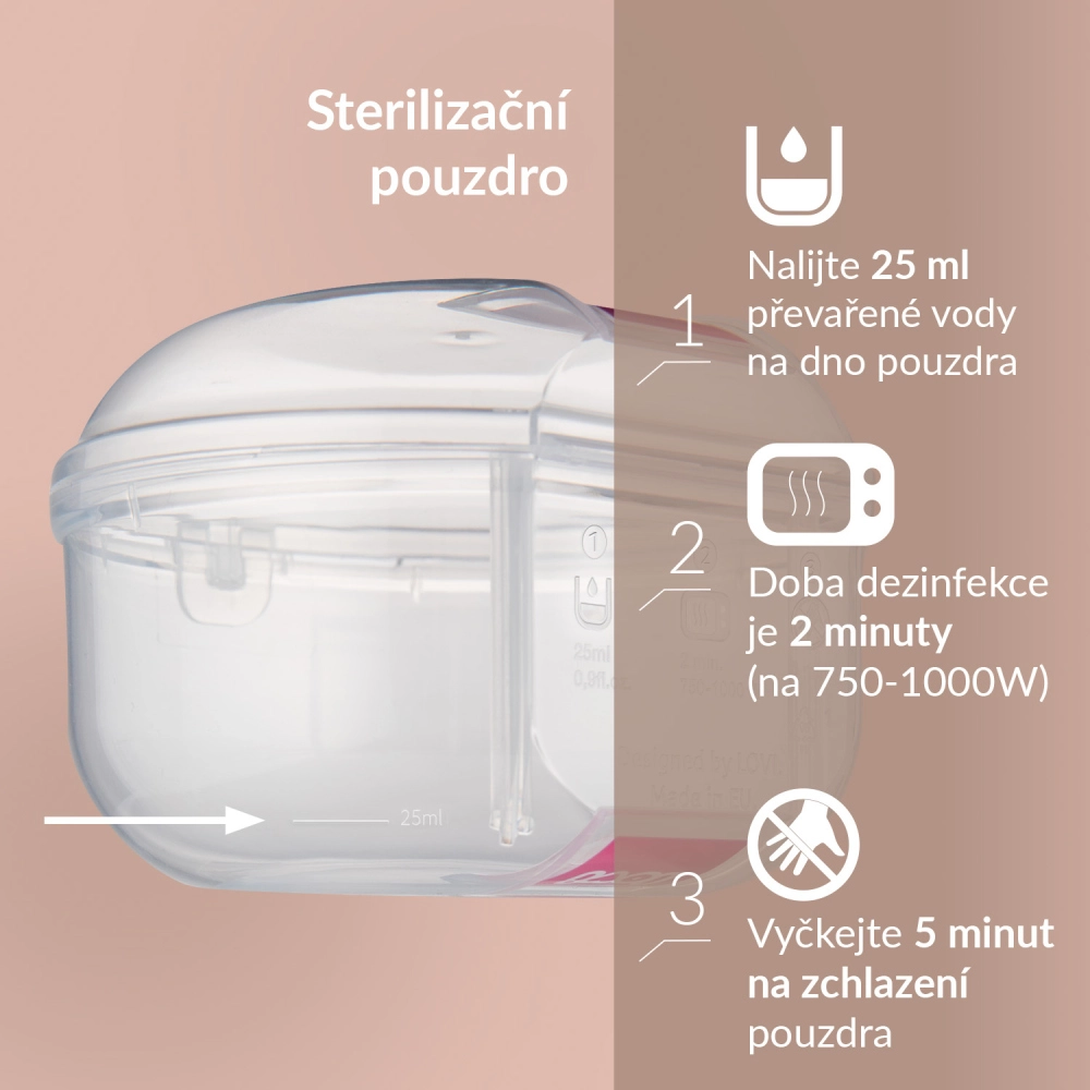 - Praktikus szett – 2 db cumi + sterilizáló tok higiénikus tároláshoz és gyors fertőtlenítéshez.
