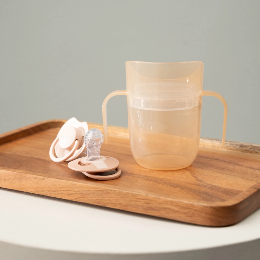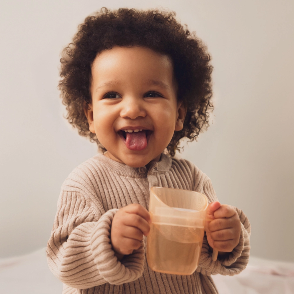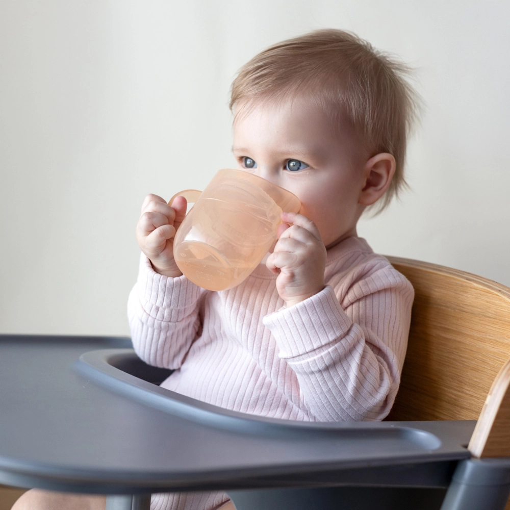 A könnyű kialakítás, a formázott dupla fogantyúk és a kezdéshez ideális kisebb űrtartalom (kb. 130 ml betéttel) megkönnyítik az átmenetet a cumisüvegről. Amint a gyermek készen áll, a betét egyszerűen kivehető, és máris 150 ml-es nyitott poharat kap – egy termék, amely valóban együtt nő a gyermekkel.