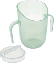 A könnyű kialakítás, a két széles fül és a kompakt méret tökéletes választássá teszi kezdőknek. Amint a gyermek elsajátítja a helyes technikát, a betét egyszerűen kivehető, és a pohár nyitott pohárrá válik 150 ml űrtartalommal – egy termék, amely valóban együtt nő a gyermekkel.