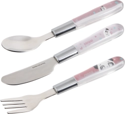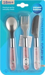 A fém gyerek evőeszköz készlet azoknak a gyerekeknek készült, akik most tanulnak önállóan enni. Ergonomikus formái és könnyű kialakítása támogatják a helyes szokásokat és a kényelmes fogást a kis kezekben. A biztonságos, lekerekített élek óvják az ínyt és nyugodt étkezést biztosítanak.