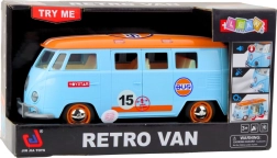 Stílusos retro furgon gyerekeknek, amely a klasszikus járművek hangulatát hozza elegáns kék színben. Kínál nyitható ajtókat, élethű fény- és hangeffekteket, valamint minőségi, strapabíró kivitelezést biztonságos anyagokból. Ideális a képzelet és a motorika fejlesztéséhez, otthoni és szabadtéri játékhoz egyaránt.