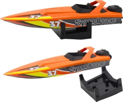 A csónak minőségi műanyagból készült, sportos megjelenéssel és intenzív színekkel hívja fel magára a figyelmet. Az elfordítható motorblokk vezérlőkerékkel lehetővé teszi az irány könnyű változtatását, így a gyerekek fejlesztik a finommotorikát, a koordinációs készségeket és a képzelőerőt.