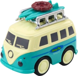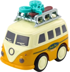 Fedezd fel a négykerekű mókát a klasszikus turistabuszok által ihletett, bájos lakóautóval. A súrlódásos meghajtásnak köszönhetően egy könnyű lökés után lendületesen elindul, a mozgó tetőcsomag pedig dinamikát ad a játéknak. Kompakt méretének hála elfér a hátizsákban, így a gyerek bárhol megélheti utazós kalandjait.