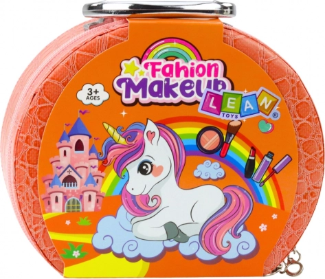 Elegáns, narancssárga kozmetikai táska bőrhatású felülettel, amely gazdag felszerelést rejt a biztonságos gyermeksminkeléshez és a szórakoztató manikűrhöz. Az átlátható rekeszeknek és a kis tükörnek köszönhetően a gyerekek kényelmesen fedezhetik fel a színek és csillámok világát.