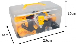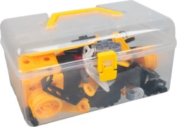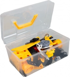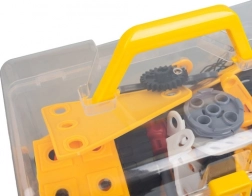 Ez az építőkészlet a kis mérnökök számára gazdag készletet kínál interaktív elemekkel, köztük kerekekkel, fogaskerekekkel, csavarokkal és szerszámokkal, amelyekkel a gyerekek különféle guruló járműveket és egyszerű mechanikus modelleket állíthatnak össze. Minden áttekinthetően elfér a masszív tárolódobozban fogantyúval, így a készlet könnyen hordozható és tárolható.