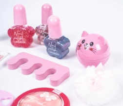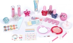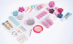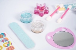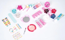 A készlet fejleszti a fantáziát és a finommotorikát. A gyerekek biztonságosan kipróbálhatják az alap sminkelést és a manikűrt vidám, barátságos kivitelben.