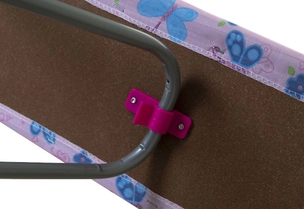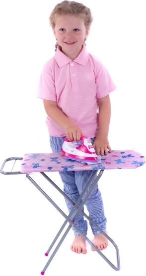 A gyermek vasalódeszkát azoknak a kis segítőknek tervezték, akik szeretnék utánozni a felnőtteket a házimunkában. Az összecsukható mechanizmussal ellátott fém váz és a strapabíró fa lap stabilitást és hosszú élettartamot biztosít. A színes, játékos, pillangómintás huzat egy kis stílust visz minden gyerekszobába.