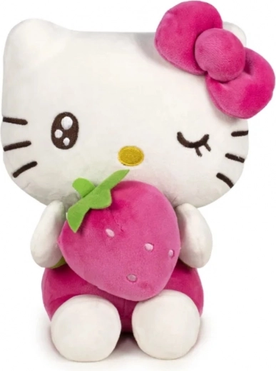 Aranyos plüss társ kicsiknek és nagyoknak. HELLO KITTY édes, epres stílusban örömet szerez puha anyagával, kis alkatrészek nélküli, biztonságos kialakításával és 25 cm-es magasságával, ami ideális ölelgetéshez és gyűjtéshez is.