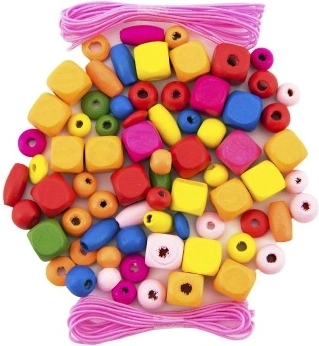 Ez a készlet különféle típusú és formájú gyöngyöket tartalmaz vidám színekben. A gyerekek fűzhetik a gyöngyöket gumikra, és egyedi karkötőket és láncokat készíthetnek, amelyek nyújthatók.