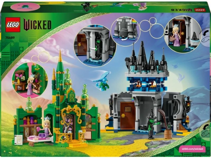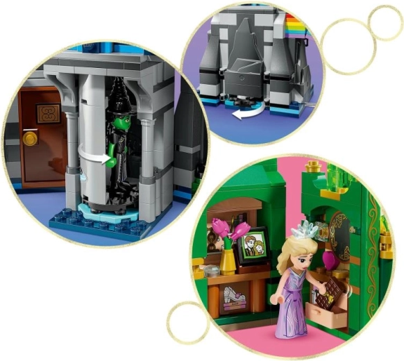 Fedezd fel a WICKED ikonikus helyszíneit egy csomagban: az elegáns Smaragdvárost stílusos szobával és Óz országának rejtett térképével, valamint a sötét hangulatú Kiamo Ko kastélyt forgó mechanizmussal és Elphaba titkos rejtekével. A kockákból épített szivárványhíd lehetővé teszi, hogy a gyerekek saját történeteket meséljenek, és a készletet ízléses szobadíszként is kiállíthassák.