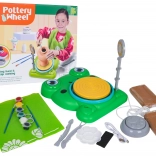 Béka alakú alap, forgó korong, lábpedál, lámpa, szerszámok, festékek és 2× agyag – minden az azonnali alkotáshoz és festéshez.