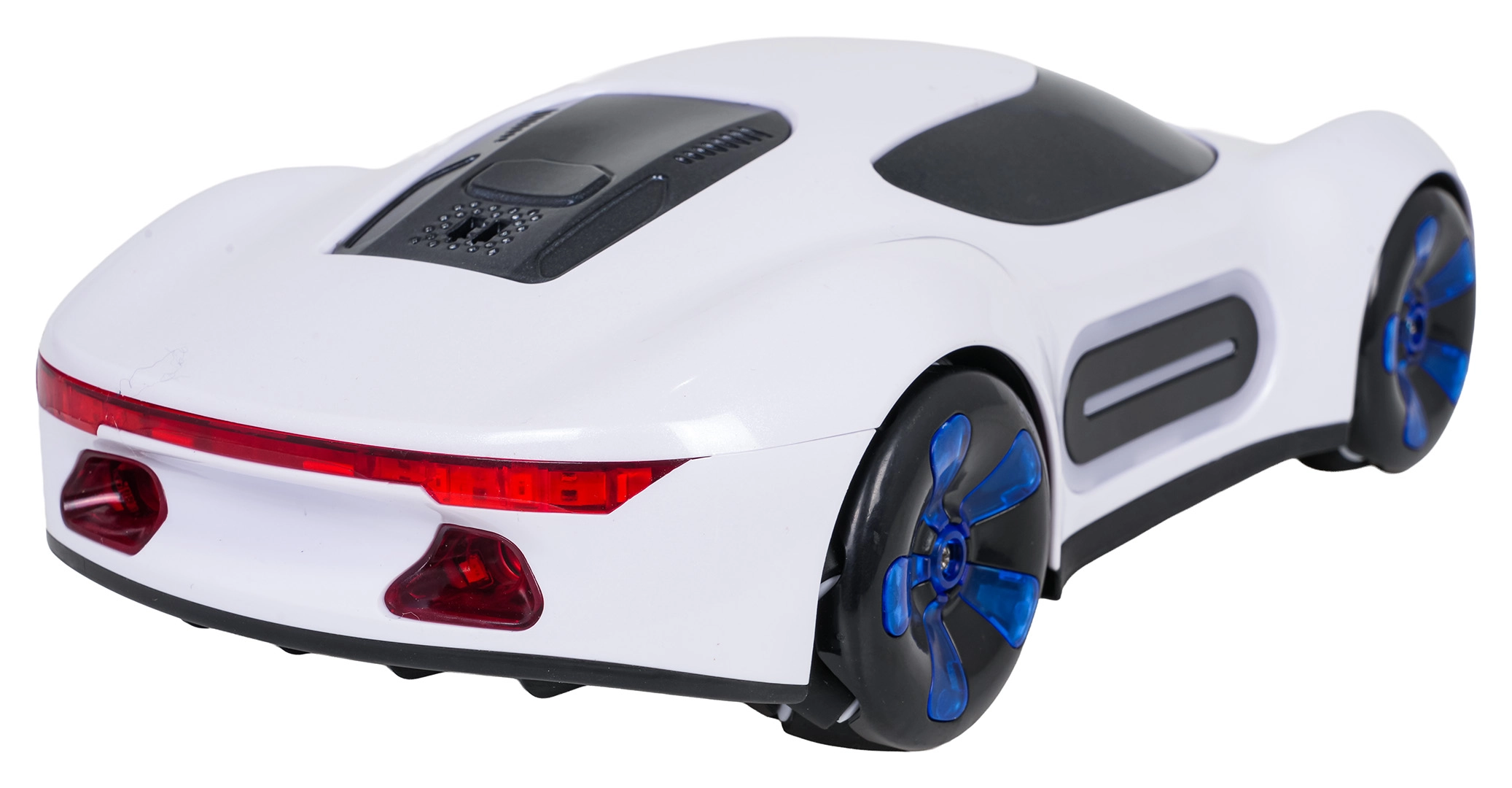 Futurisztikus RC autó 3 éves kortól, amely füsthatást kelt a víztartály feltöltése után, LED kerék- és karosszéria-világítással, valamint 2,4 GHz-es vezérléssel klasszikus távirányítóval és gesztusokkal, karkórás vezérlőn. Tud driftelni, minden irányba haladni és 360°-ban forogni.