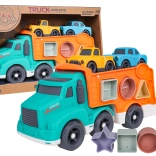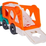 Ez az öko játék a szórakozást tanulással köti össze: a gyerekek finommotorikája és formafelismerése fejlődik a szállító oldalain található formabedobónak köszönhetően, miközben két kisautóval élvezik a fantáziadús gurulást. A tartós bioplasztik, a lekerekített formák és az élénk színek biztonságos és vonzó játékélményt nyújtanak.