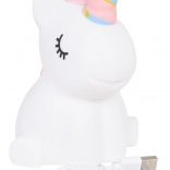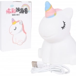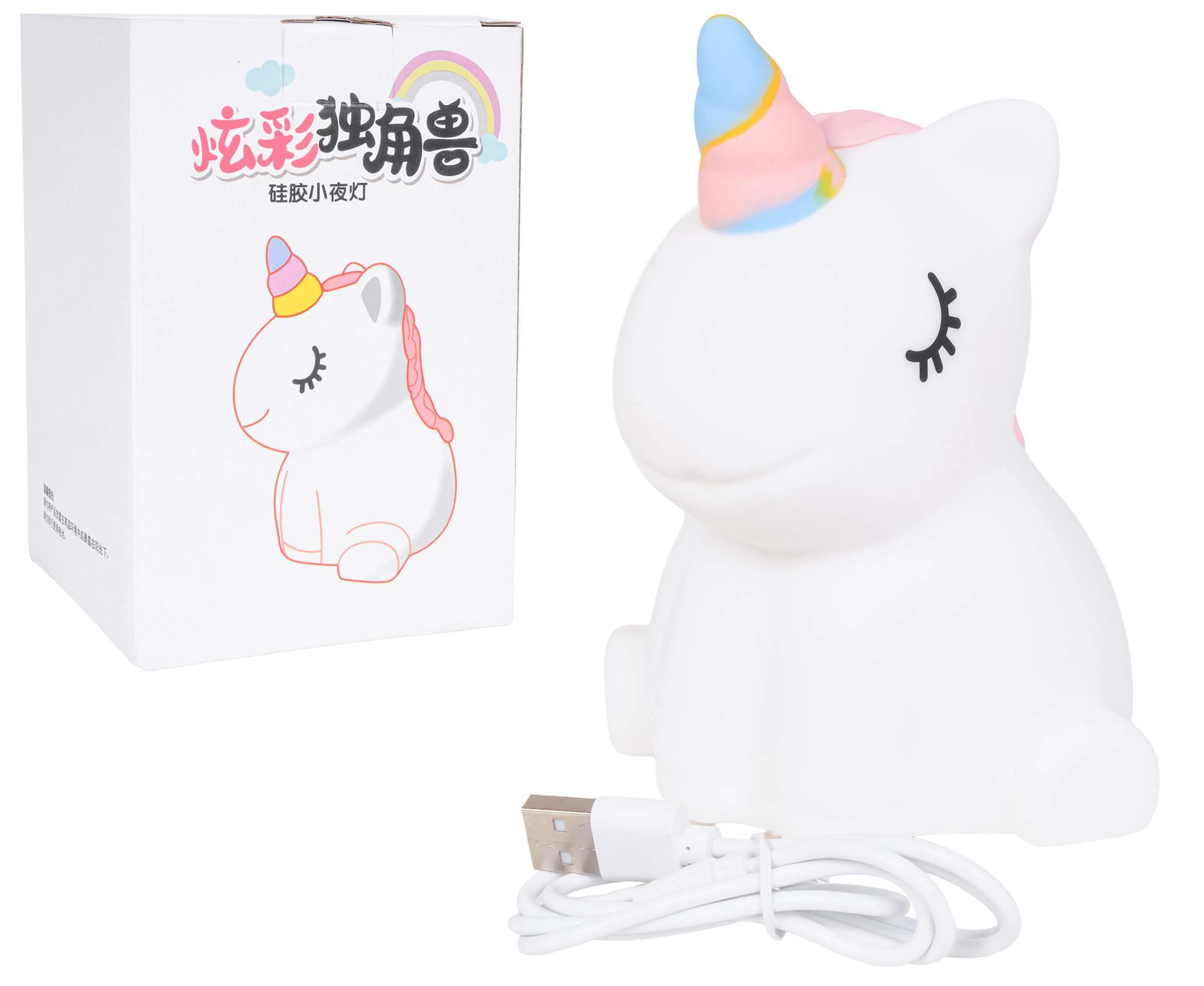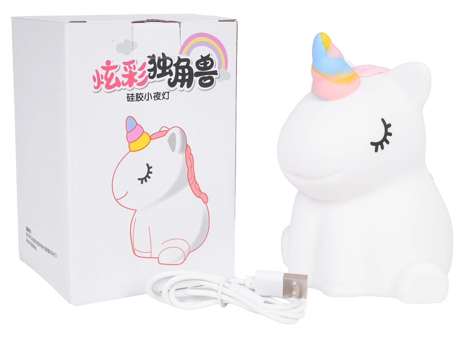 Aranyos unikornis alakú éjjeli lámpa BPA-mentes, puha szilikonból, amely meleg, gyengéd fényt ad, és kellemes, biztonságos hangulatot teremt a gyerekszobában. 3 fényerőszintet kínál (10%, 50%, 100%), érintésvezérléssel a teljes felületen és USB‑C töltéssel a beépített 3,7 V-os akkumulátorhoz.