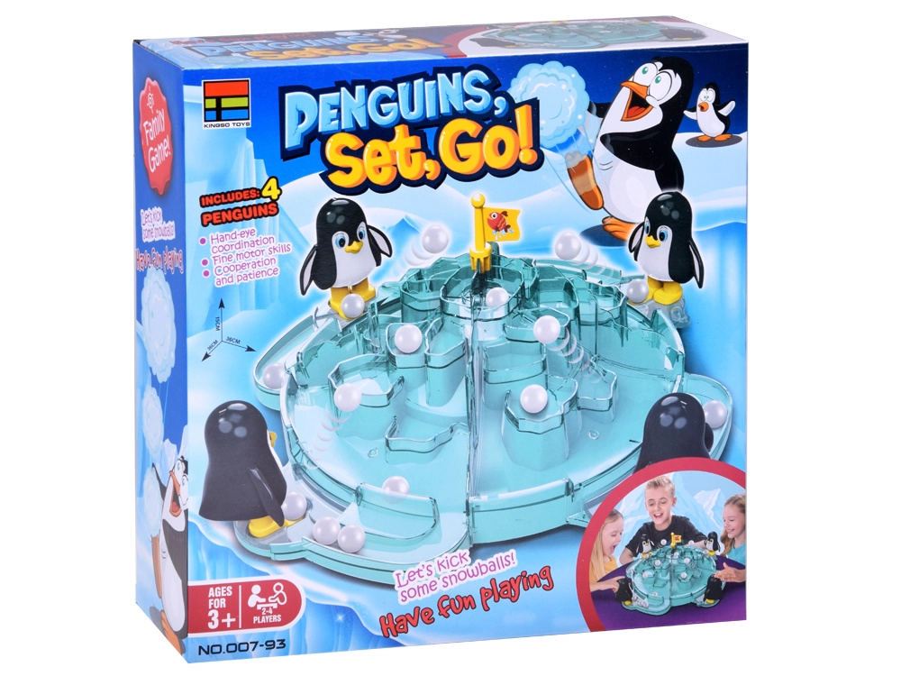 Nyomd le a pingvin fejét, és küldd a hógolyót a jeges pályán. Az egyszerű mechanizmus szórakoztató és a kisebb gyerekek számára is könnyen kezelhető.