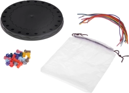 Kör alakú tábla, pöckök és zsinórok készlete, valamint praktikus tasak a hordozáshoz – ideális utazáshoz és iskolába.