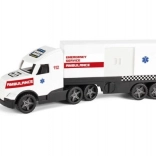 A MAGICK TRUCK ACTION – Mentő valósághű játék, amelyet igazi teherautók inspiráltak. Okos kialakításának köszönhetően sokféle játékélményt kínál: rakodás és kirakodás, a szerelvény átalakítása, illetve a pótkocsi önálló használata. A tartós és stabil felépítés hosszú távú használatra készült beltéren és kültéren egyaránt.