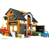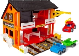 Fedezze fel a valósághű gyerek autószervizt, amely két szervizállást, rámpákat, működő liftet és darut kínál a járművek emeléséhez. Nyitható ajtók és számos mozgó elem garantálja a hosszan tartó szórakozást. Tartozék: 2 kisautó, 1 utánfutó, 2 konténer olajnak és használt alkatrészeknek, valamint 34 matrica a környezet egyedi kialakításához.