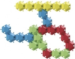 Az elemek intuitívan összepattinthatók és stabilan tartanak. A változatos színek segítik a megkülönböztetést és motiválnak a további alkotásra.