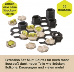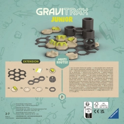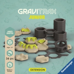 A bővítés több lehetőséget kínál arra, hogy a golyók különböző irányokba haladjanak, és kacskaringós útvonalakat alkossanak tele meglepetéssel. Ideális a meglévő GraviTrax Junior készletek bővítésére, és támogatja a kreatív, önálló játékot 3 éves kortól.