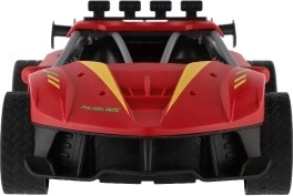 A piros RC sportautó a kisebb és nagyobb versenyzőknek egyaránt örömet szerez. A 2,4 GHz-es vezérlésnek köszönhetően egyenletes irányítást kínál előre/hátra és oldalirányban, a puha gumiabroncsok kiváló tapadást biztosítanak, a realisztikus kipufogó-hűtési effekt pedig igazi versenyhangulatot ad a vezetésnek. A karosszéria strapabíró és egészségre ártalmatlan műanyagból készült, így a megterhelőbb használatot is bírja.