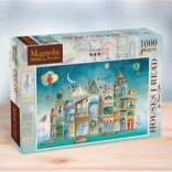 Stílusos puzzle Házak, amelyekről olvastam motívummal a Magnolia márkától, 1000 darabbal kiváló minőségű kartonból, órákon át tartó szórakozáshoz és relaxációhoz. Összeállítva a puzzle mérete kb. 68 × 48 cm, keretezéshez vagy kiállításhoz ideális.