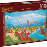 Élvezze a hosszú órákon át tartó szórakozást a részletgazdag motívummal és a precízen vágott, tökéletesen illeszkedő elemekkel. A madárijesztő-karnevál témájú puzzle örömet szerez az eredeti illusztrációk kedvelőinek és a tapasztalt kirakórajongóknak egyaránt.