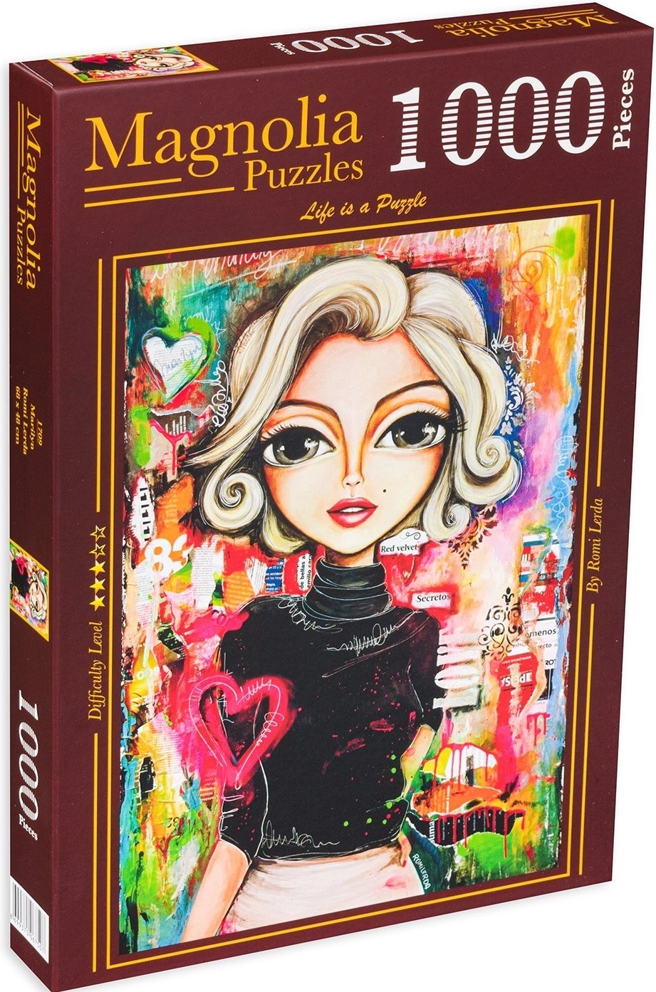 Fedezze fel a klasszikus varázsát a MARILYN kirakóval. Precízen kivágott darabok, élénk színek és éles részletek biztosítják a gördülékeny kirakást és a gyönyörű végeredményt. Ideális ajándék az ikonikus motívumok kedvelőinek és a lelkes kirakó rajongóknak.