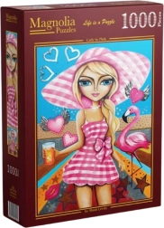 Fedezze fel a kirakózás varázsát, és engedje érvényesülni a „Rózsaszín hölgy” motívum finom esztétikáját. Ez a 1000 darabos puzzle remek választás nyugodt estékhez, a türelem és a koncentráció fejlesztéséhez, valamint elegáns dekorációként a befejezés után.