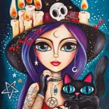 - Részletgazdag, élénk színű motívum cuki boszorkánnyal