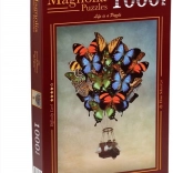 Ez az elegáns puzzle a lepkékből összeálló ballon költői motívumával a színek harmóniáját és kellemes kikapcsolódást kínál. A gondosan kivágott 1000 darabnak köszönhetően több órányi összpontosított szórakozás vár, a befejezés után pedig egy dekoratív, 48 × 68 cm-es képet kap.