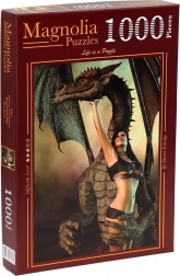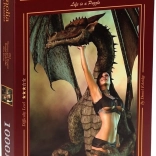 Stílusos puzzle lány és sárkány motívummal az igényesebb kirakáshoz. 1000 darab órákon át tartó szórakozást és relaxációt nyújt, a kész kép mérete kb. 48 × 68 cm – ideális keretezéshez.