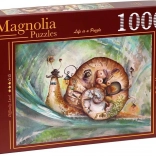 Ez a csigát ábrázoló puzzle stílusos, megnyugtató motívummal érkezik, tökéletes otthoni relaxációhoz. Az 1000 masszív darabnak köszönhetően gördülékeny a kirakás, az eredmény pedig minőségi, akár keretezésre is alkalmas.