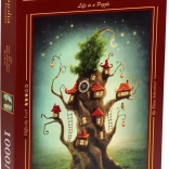 Élvezze a hosszú órákon át tartó szórakozást a részletgazdag illusztráció összeállításával, melynek motívuma egy fantáziadús lombház. Az 1000 darabos puzzle remek kihívás felnőtteknek és nagyobb gyerekeknek, fejleszti a türelmet, a koncentrációt és a térbeli képzelőerőt.