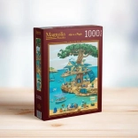 Fedezze fel a kirakózás örömét a fa ágai között pihenő macskákat ábrázoló, gyönyörű motívummal. Ez a 1000 darabos puzzle kellemes kihívást nyújt, és összeállítva dekoratív képet ad 48 × 68 cm méretben, amely minden macska- és puzzlekedvelőnek örömet okoz.