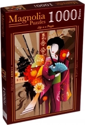 Élvezze a pihenést egy elegáns gejša motívum kirakásával. Ez a minőségi, 1000 darabos puzzle részletgazdag illusztrációt, kellemes nehézségi szintet és kb. 48 × 68 cm-es kész méretet kínál – tökéletes keretezéshez.
