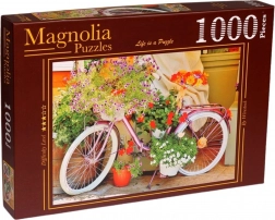 Élvezze a nyugodt kikapcsolódás óráit a virágokkal díszített elegáns kerékpár motívummal. Az 1000 darabos puzzle remek választás a designmotívumok és a relaxáló kirakás szerelmeseinek egyaránt. Összeállítás után egy kb. 68 × 48 cm-es dekoratív kép születik, amely kiállításhoz is jól illik.